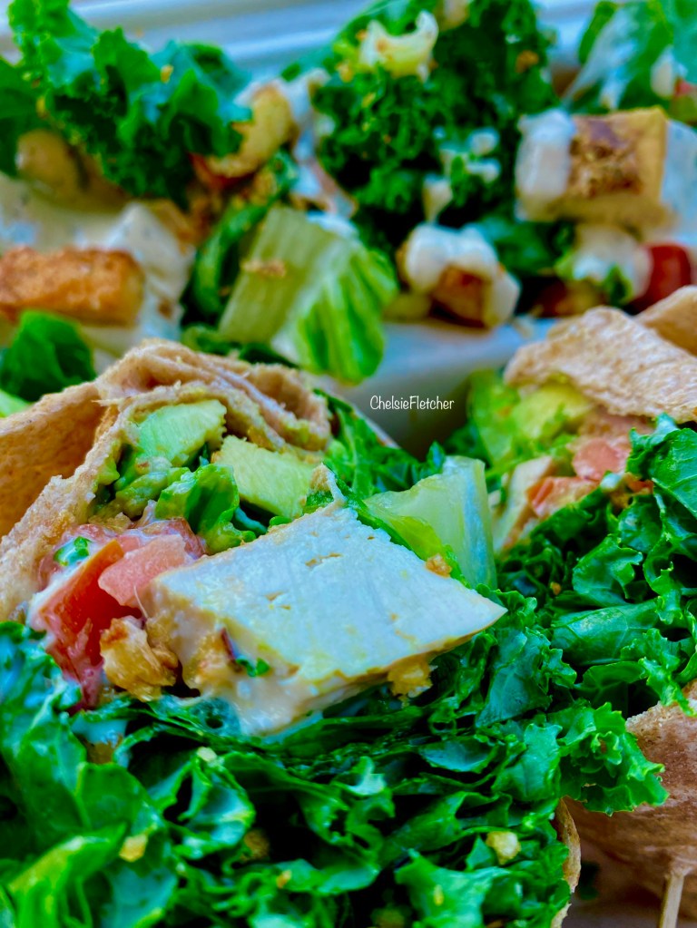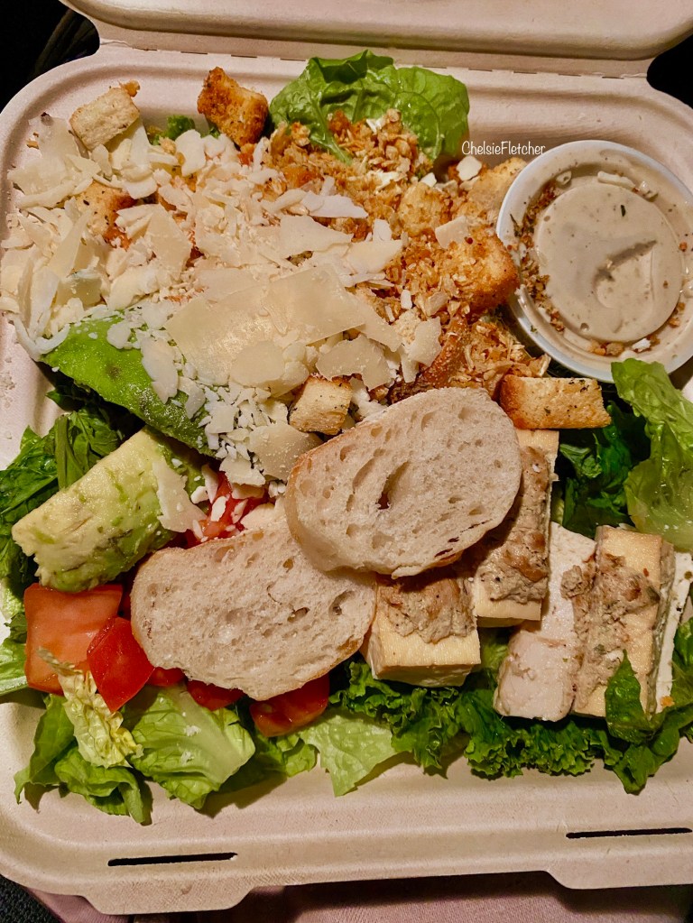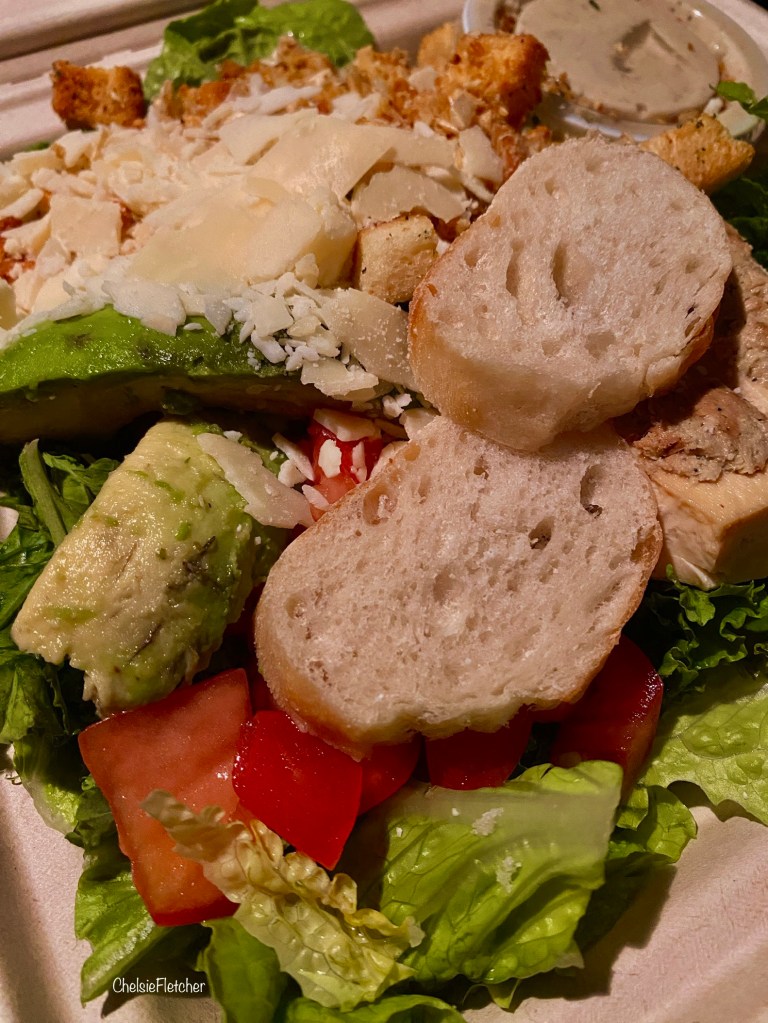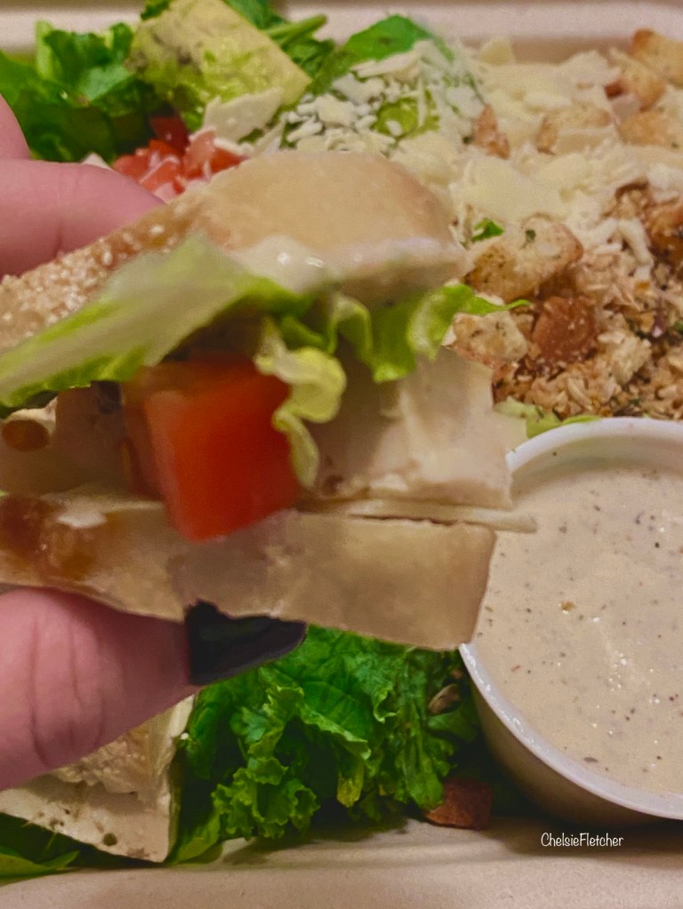 kale, romaine, croutons, parmesan, tomatoes, fried garlic chips, caesar dressing